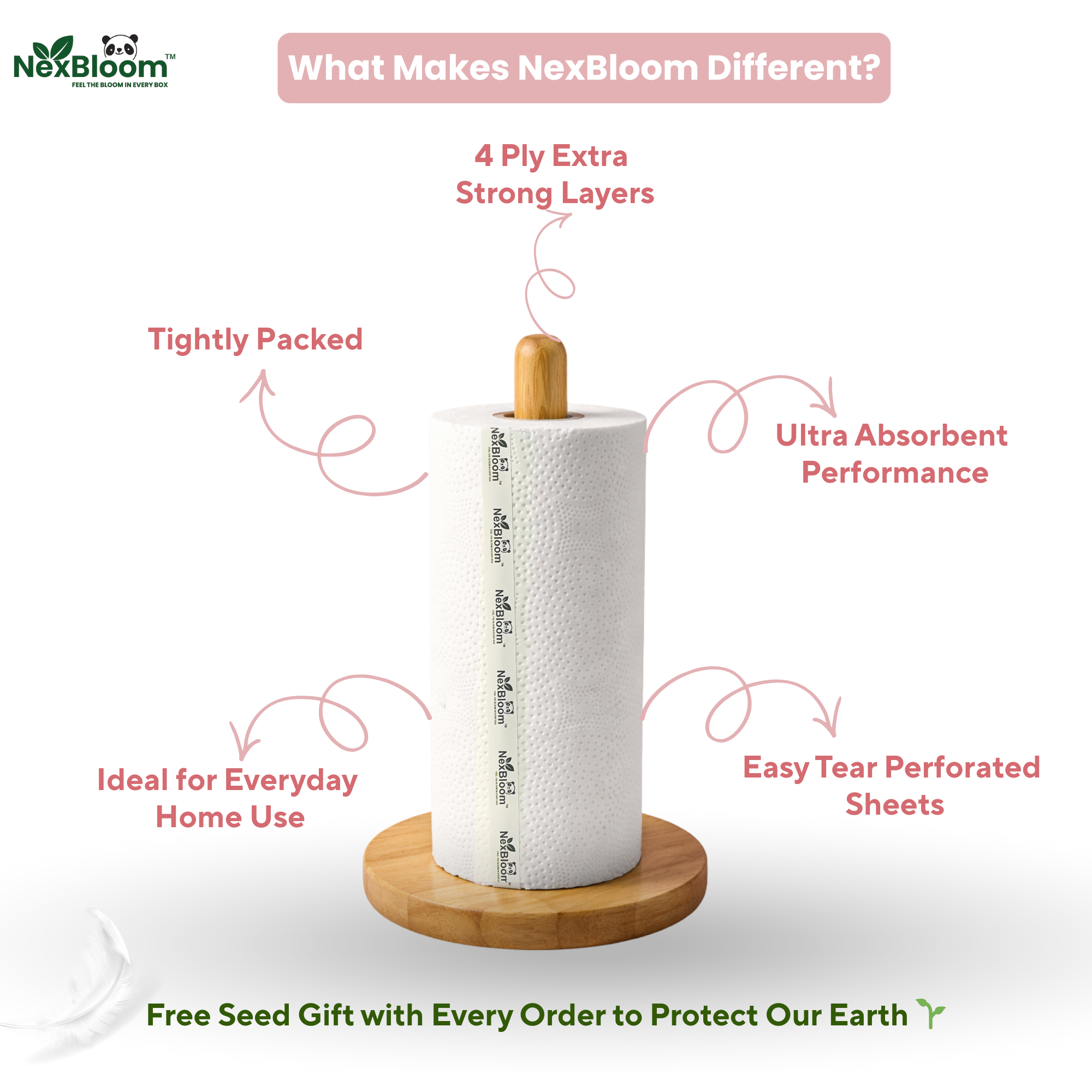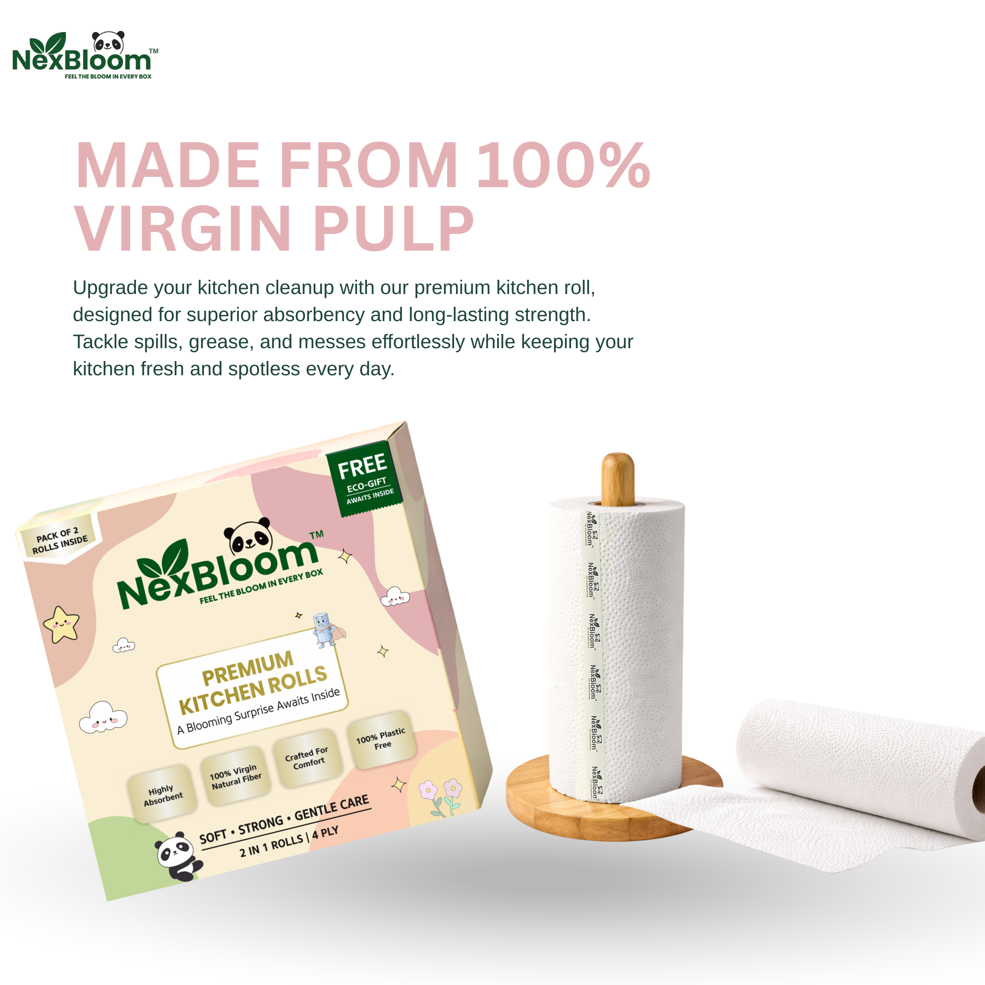 Engineered for spills, messes, and everyday kitchen needs. NexBloom Kitchen Rolls
