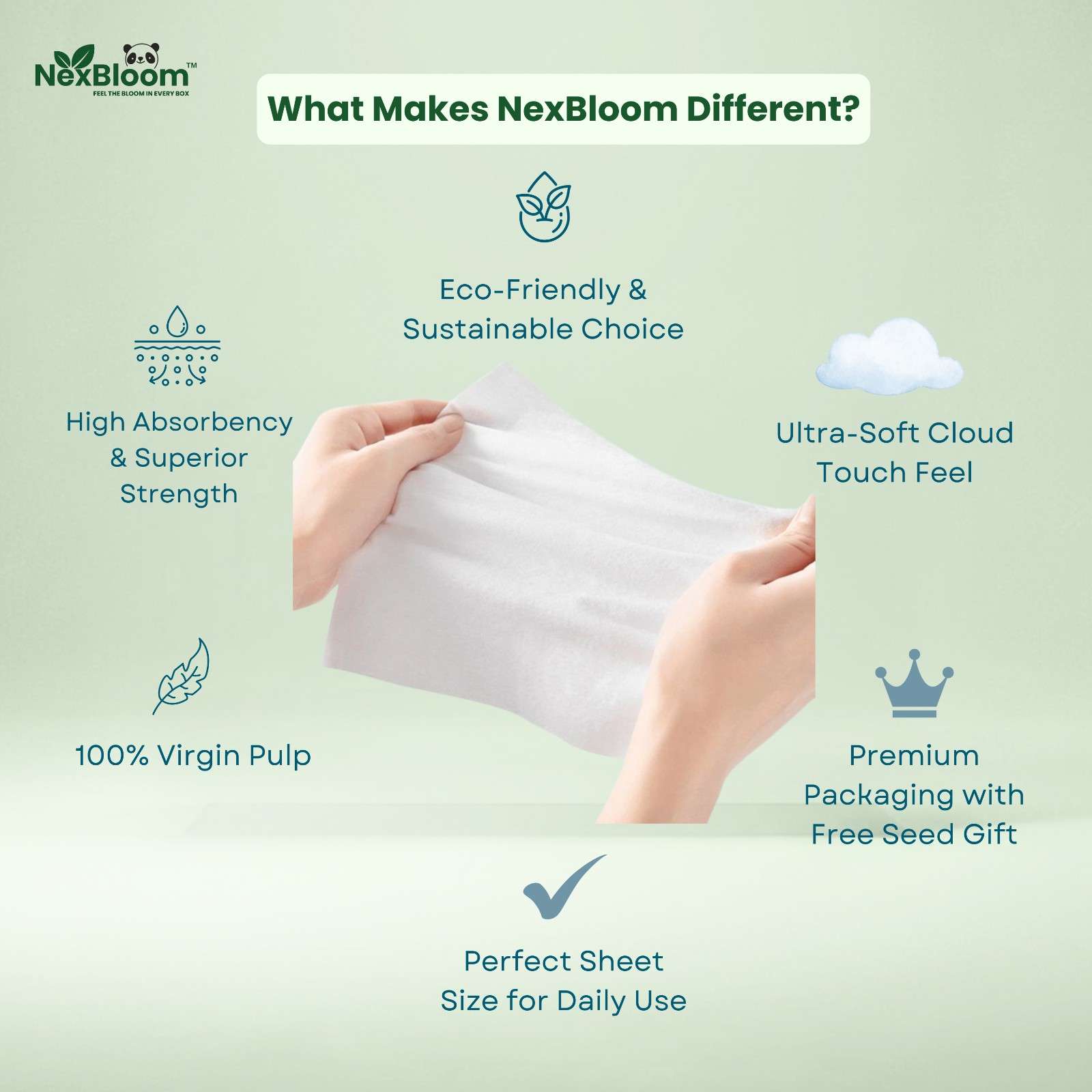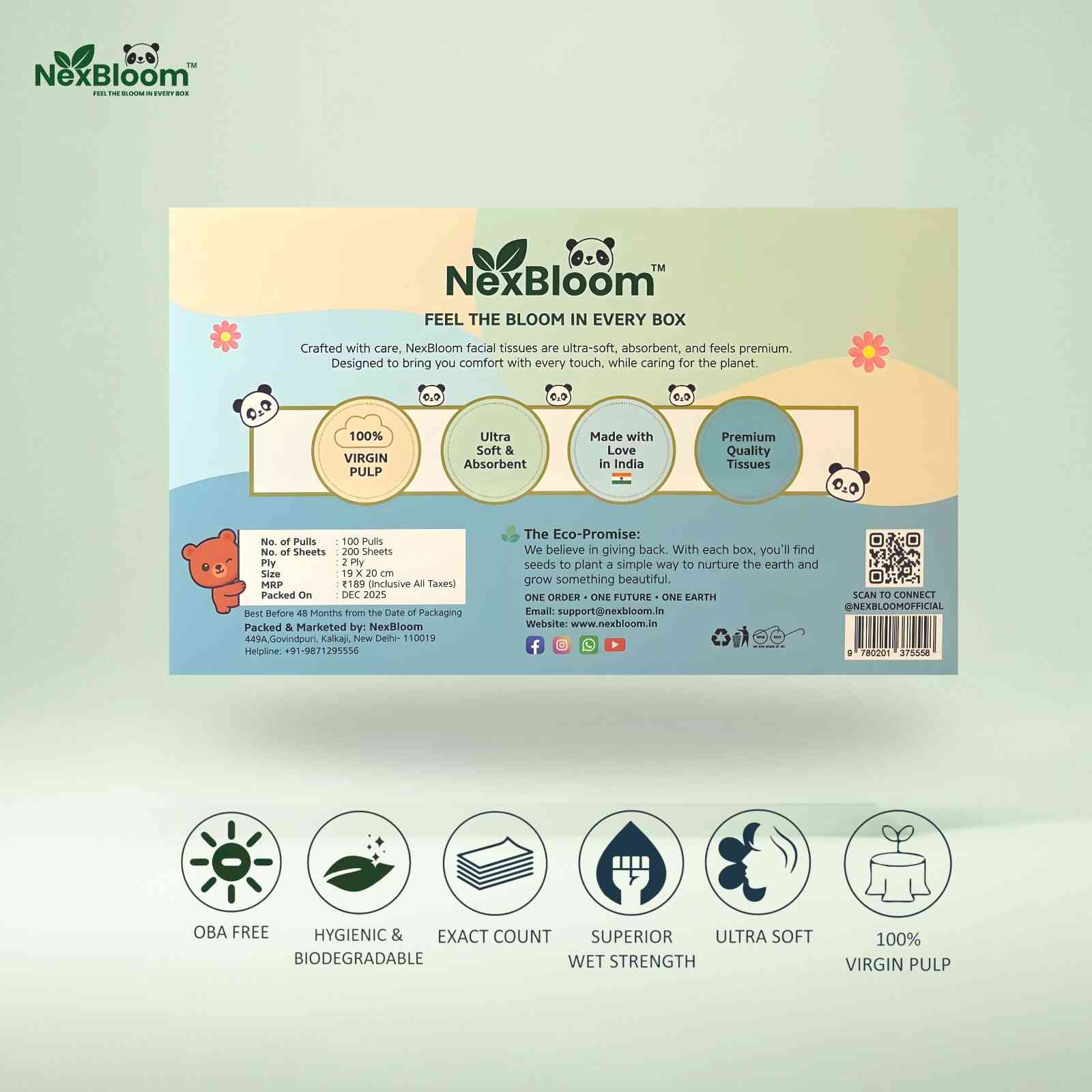 NexBloom Premium Face Tissues (100 Pulls) are thoughtfully crafted using high-quality biodegradable paper to deliver unmatched softness and strength. Gentle on skin, safe for daily use, and packed in an elegant box that complements modern homes, offices, and cars. Every purchase supports a greener planet with our seed-gifting initiative.