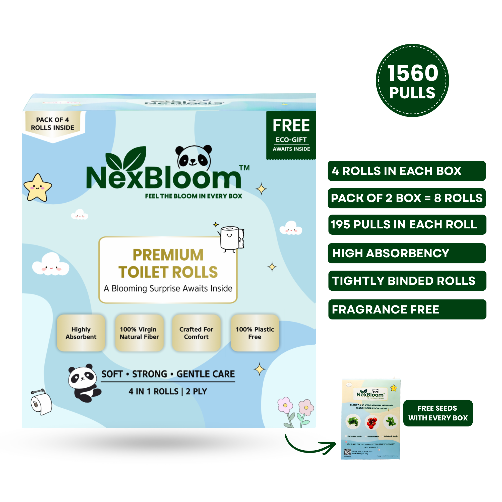 NexBloom Premium Toilet Rolls – Pack of 4 – Two Box